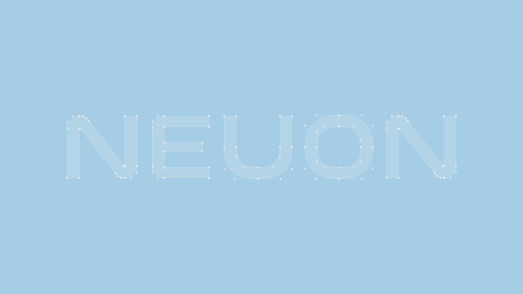 A tipografia principal foi desenhada com proporções levemente expandidas, transmitindo estabilidade e amplitude, enquanto os cantos suavemente arredondados equilibram a rigidez técnica do setor com uma percepção mais próxima e acessível. Essa combinação reforça o posicionamento da Neuon como uma empresa tecnicamente precisa, mas centrada em relacionamentos humanos.
