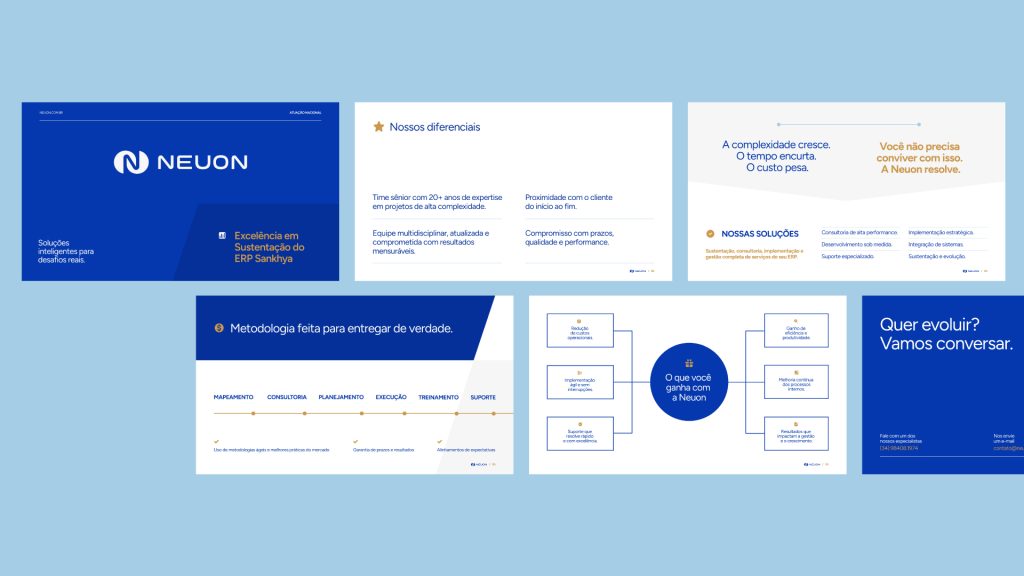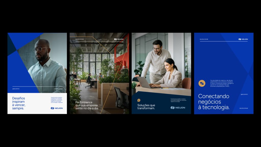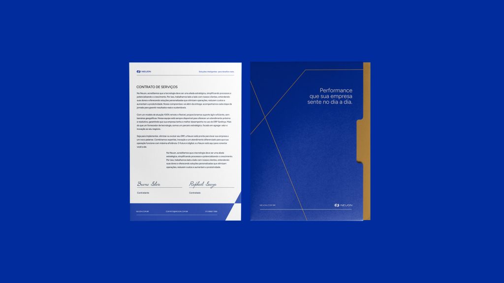 A Neuon é uma empresa especializada em sistemas ERP voltados a médias e grandes organizações, com o objetivo de conectar tecnologia e gestão de forma integrada e eficiente. A identidade visual foi construída para traduzir esse posicionamento, racional, tecnológico e orientado à performance, em uma linguagem visual clara e coerente.