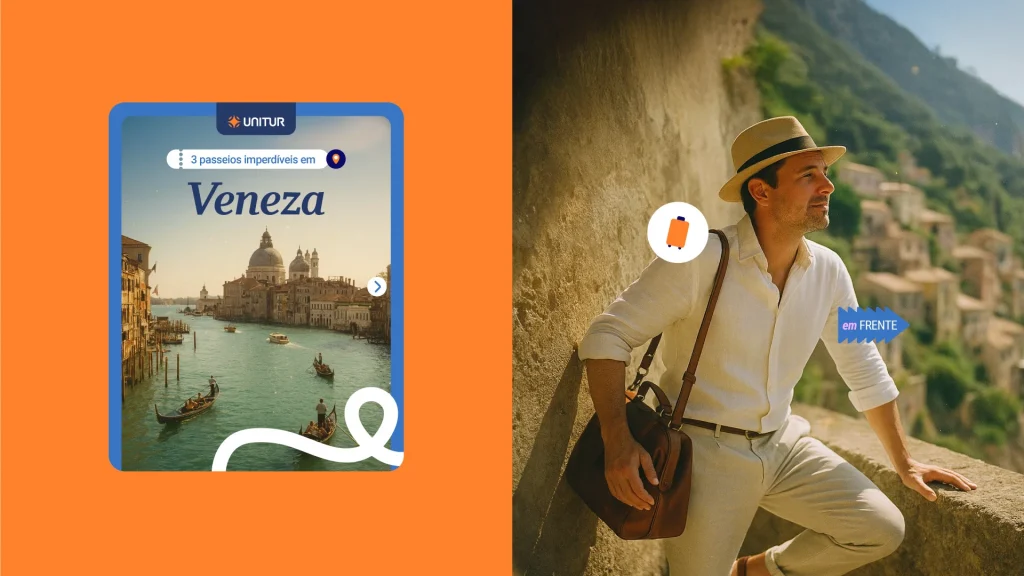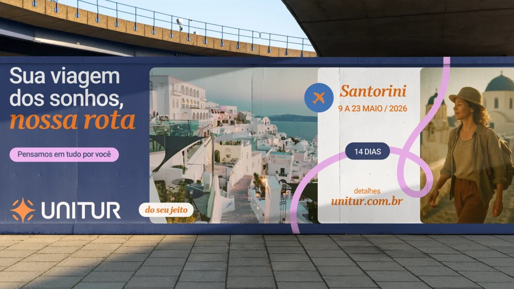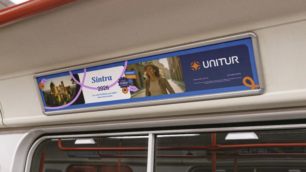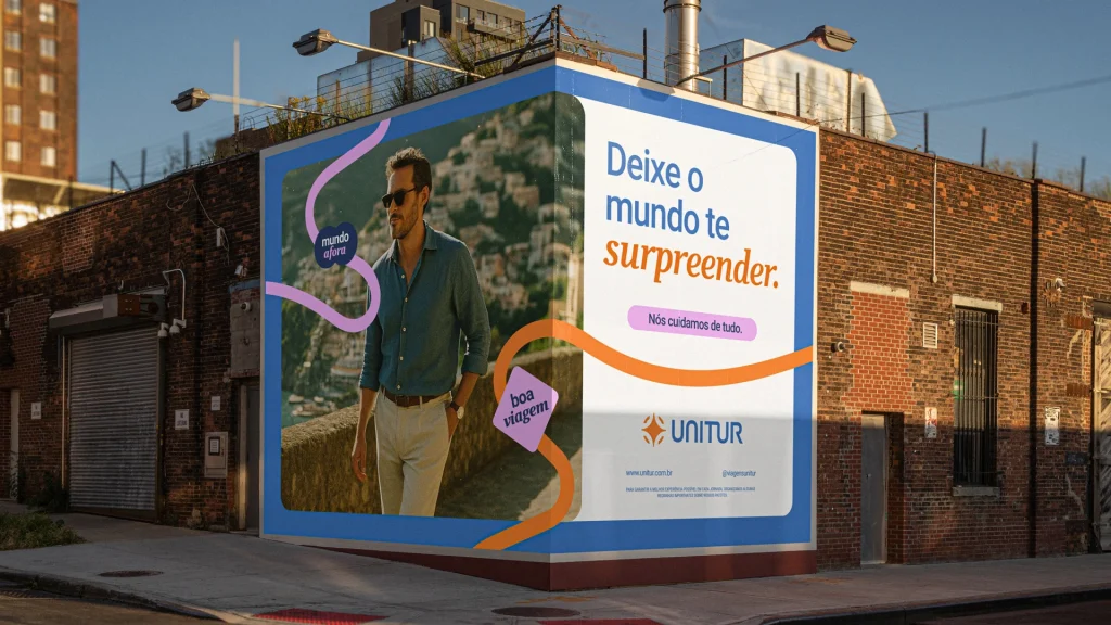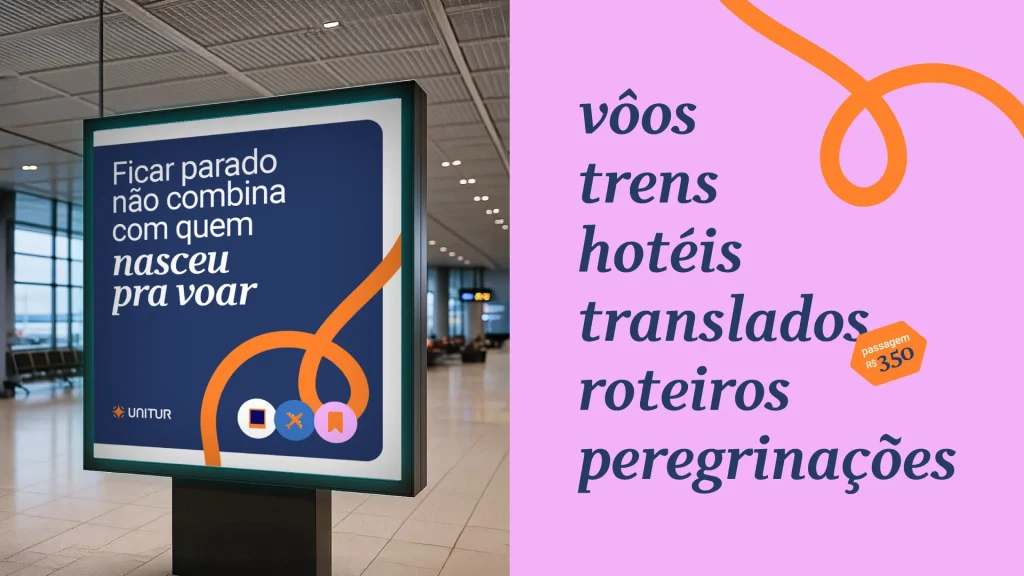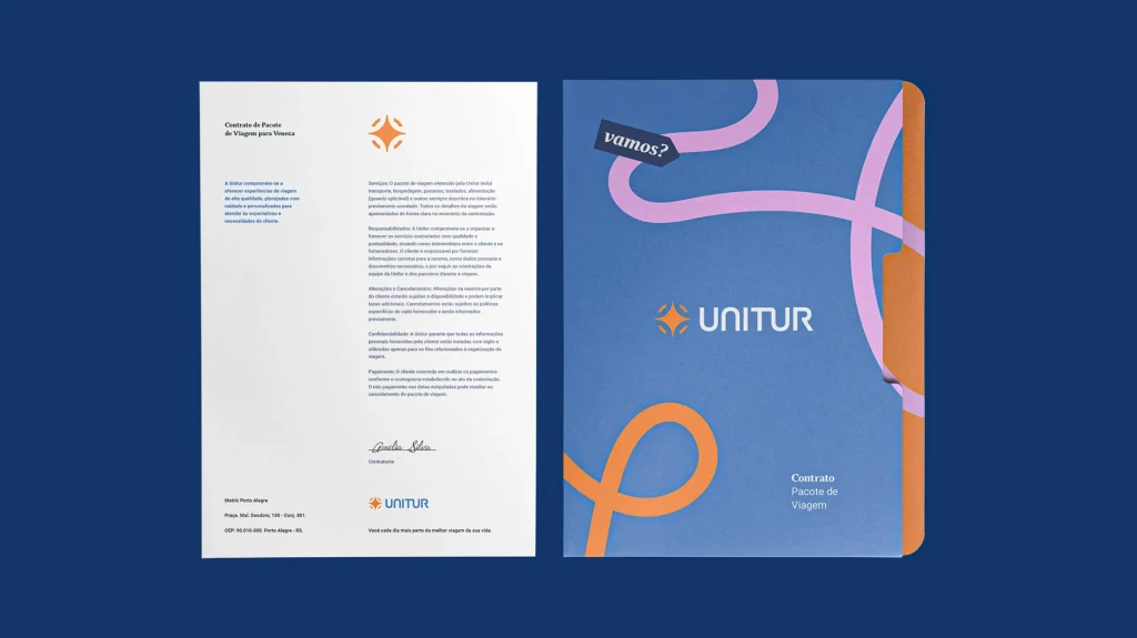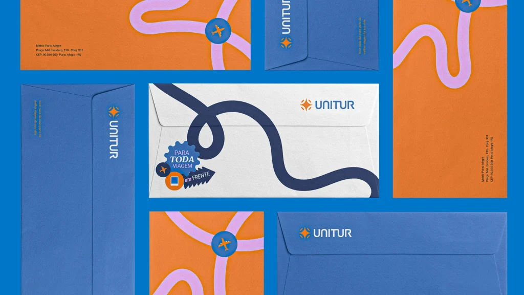 Os novos grafismos, ícones e cores foram criados para aproximar a marca de seu público e romper com o visual tradicional do segmento. Cada elemento foi inspirado nos roteiros personalizados da Unitur, trazendo à marca a identidade única e marcante que ela merece.